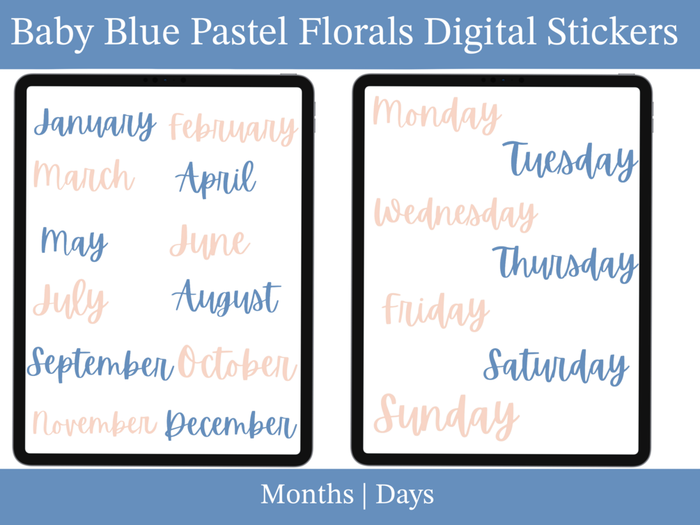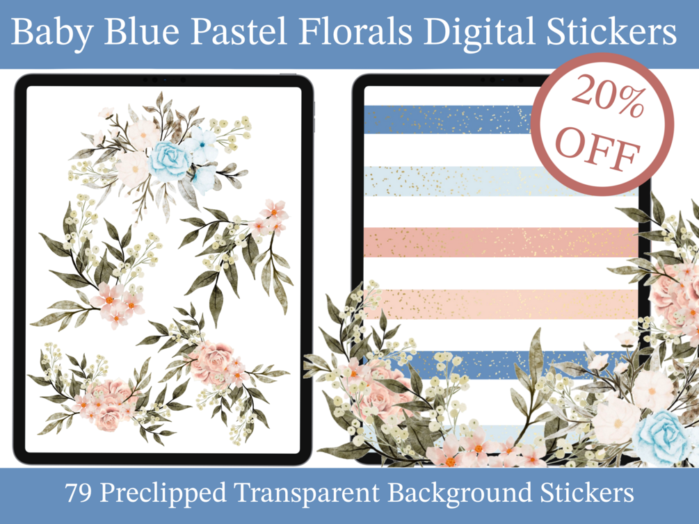 79 Bujo Stickers | Baby Blue Pastel Floral Stickers | Digital Sticker Sheets | Instant Download | High Quality | GoodNotes Stickers