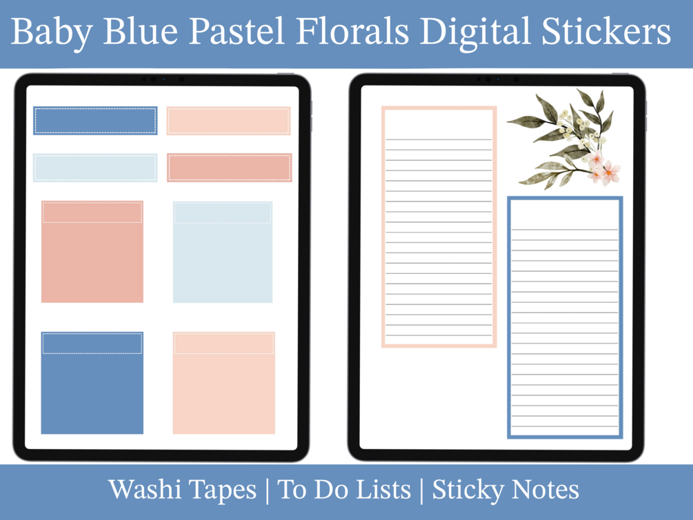 Elevate your digital note-taking game with our 79 Baby Blue and Pink Themed Bujo Stickers! Designed with a simplistic and minimalistic aesthetic, these high-quality digital stickers are perfect for students, brides, and note-takers who appreciate a clean and organized look.