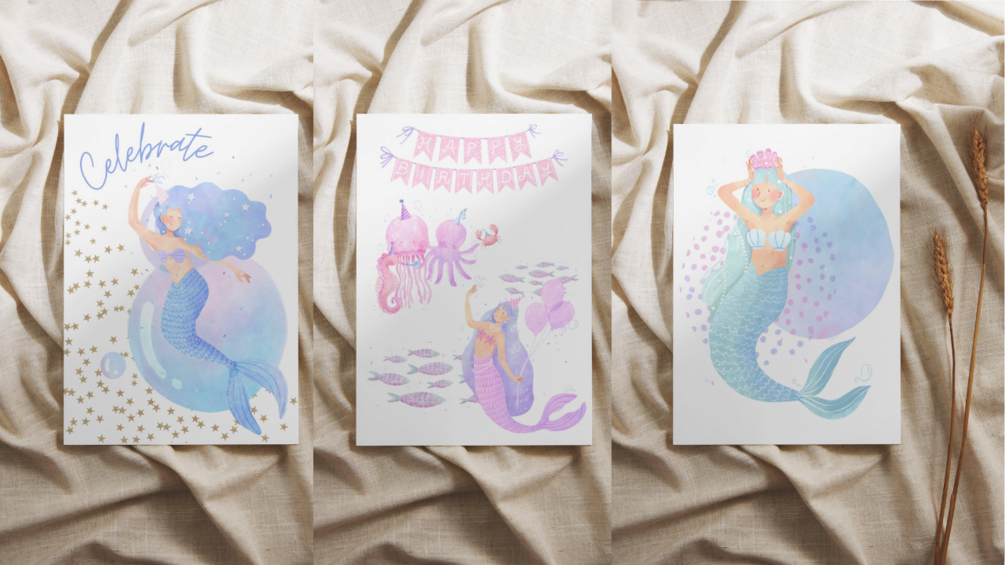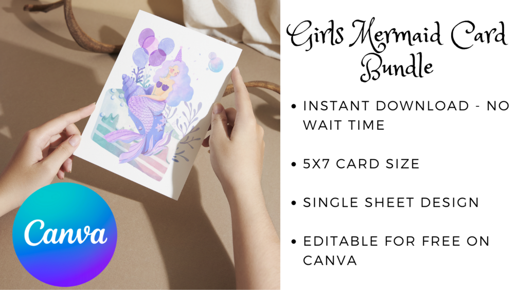 Mermaid Themed Card Bundle | Editable & Printable | Girls Birthday Invitations
