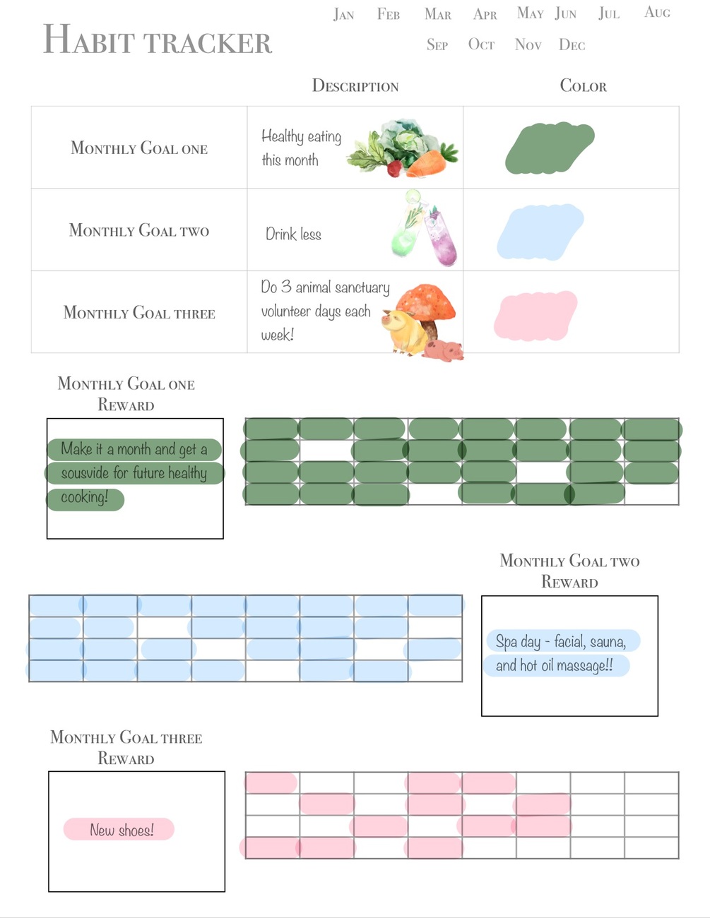 With this journal, you will have everything from your year to your days planned out! Help keep track of your personal goals on a daily, weekly, monthly, and quarterly basis with the habit tracker! It’s such an amazing feeling to see yourself reaching your aspirations in real time!